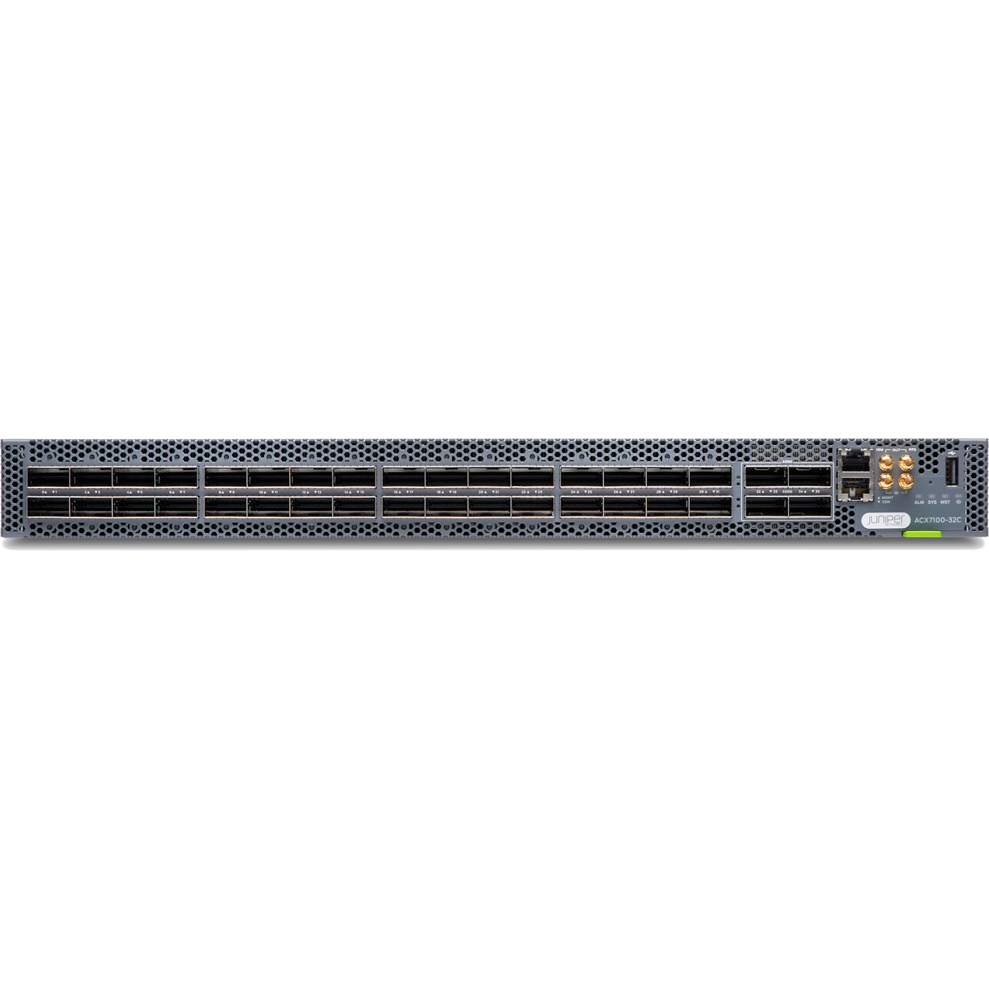 ACX7100 DevID with 32 QSFP28 / 4 QSFP56-DD multi-rate ports, DC PSU, AFO