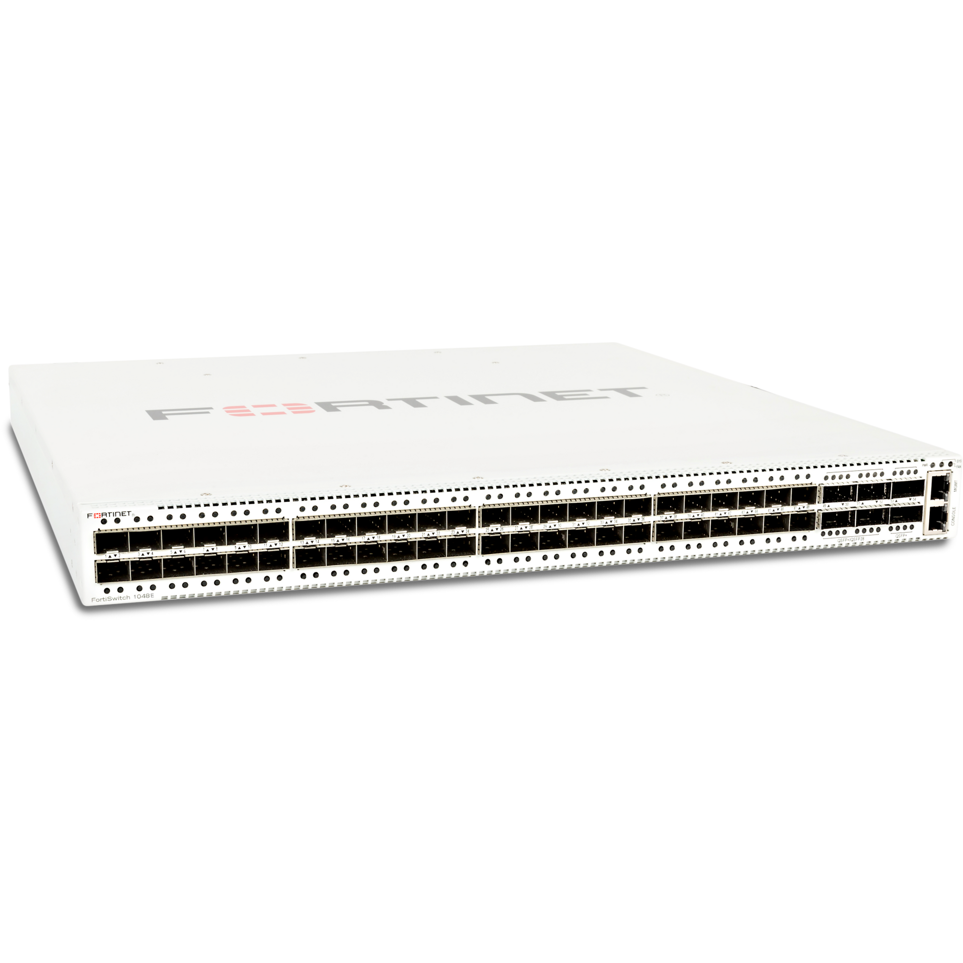 FortiSwitch-1048E Layer 2/3 FortiGate switch controller compatible switch with 48 x GE/10GE SFP/SFP+ slots and 6 x 40GE QSFP+ or 4 x 100GE QSFP28. Dual AC power supplies [FS-1048E]