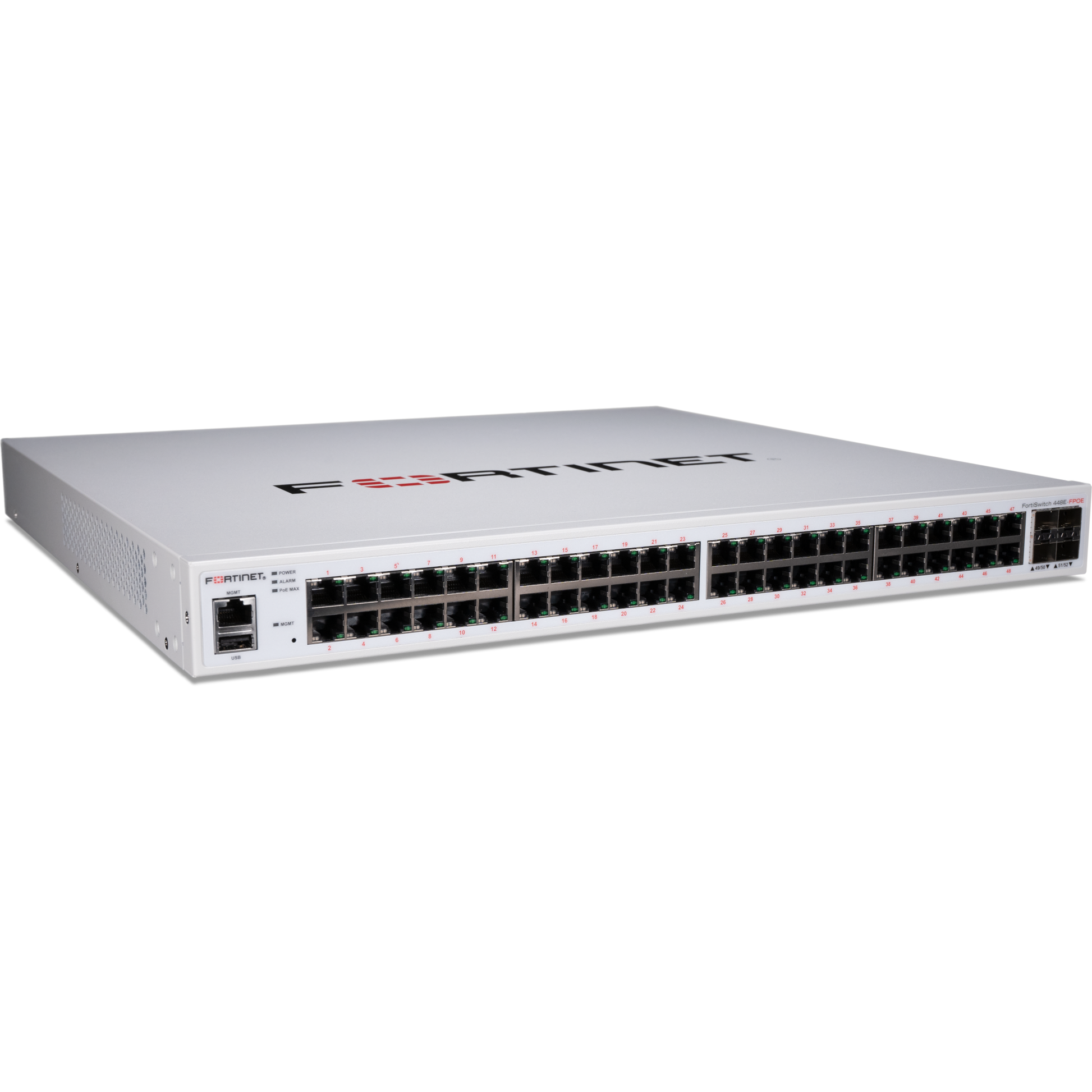 FortiSwitch-448E-FPOE Layer 2/3 FortiGate switch controller compatible PoE+ switch with 48 x GE RJ45 ports, 4 x 10 GE SFP+, with automatic Max 772W POE output limit [FS-448E-FPOE]