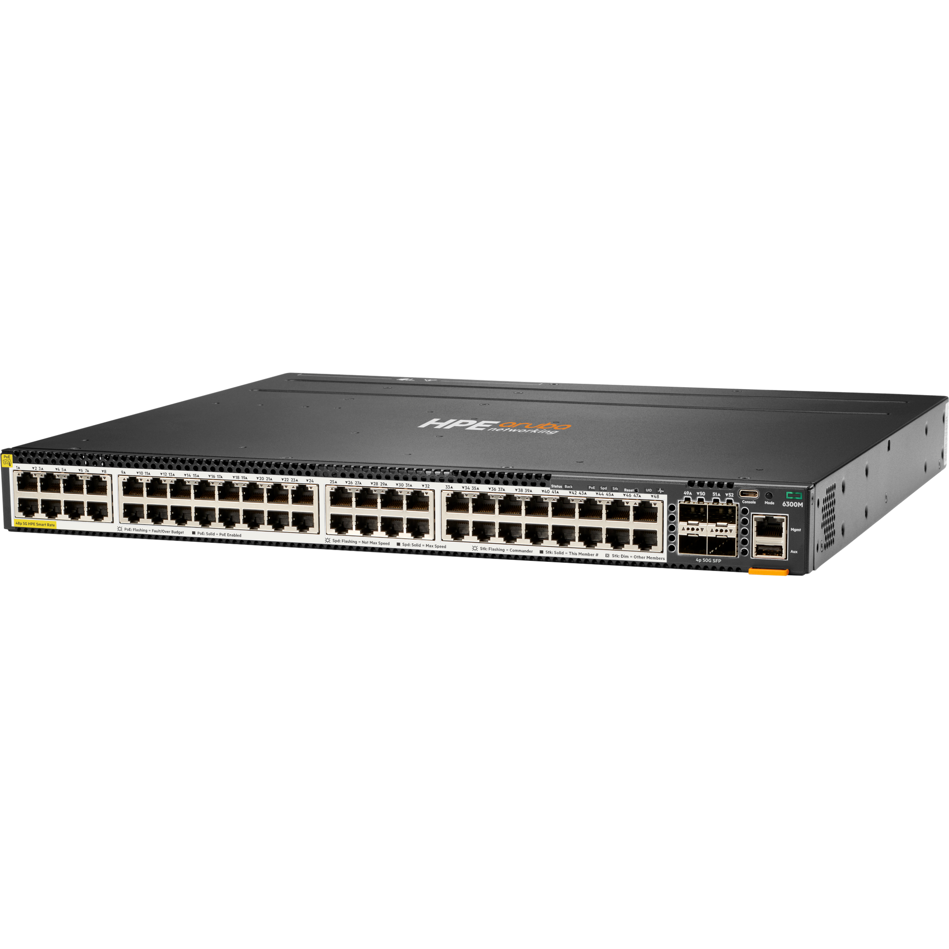 HPE Aruba Networking CX 6300M 48p Smart Rate 1G/2.5G/5G Class6 PoE 4p SFP56 50G TAA Switch